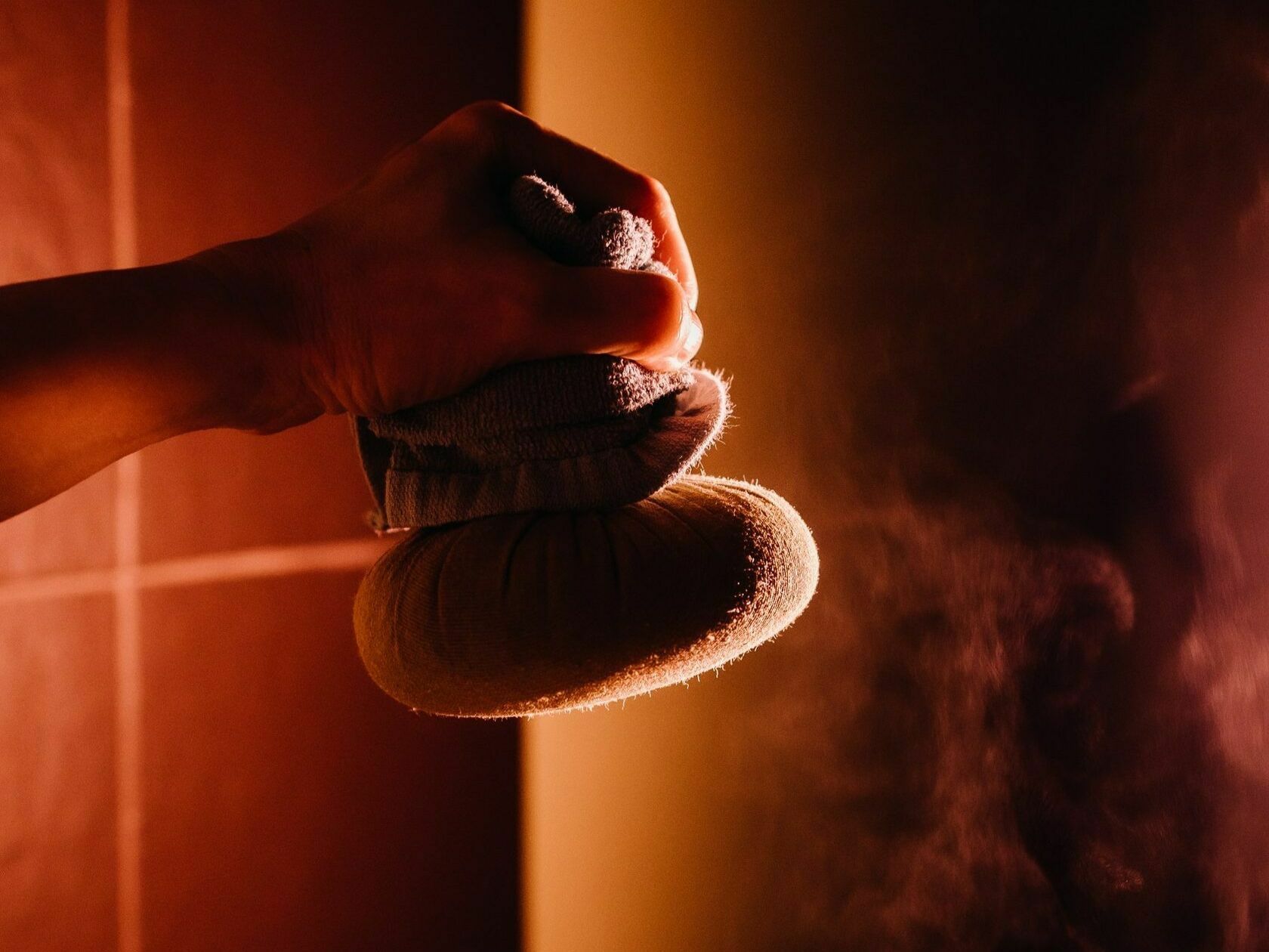 Этот расслабляющий массаж проводится на кушетке с использованием масла и распаренных травяных мешочков.